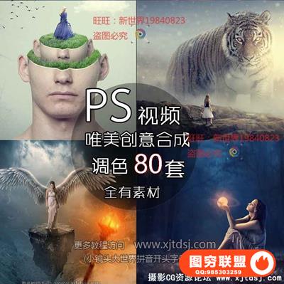 PS唯美创意人物后期合成调色PS设计视频教程80套含有素材