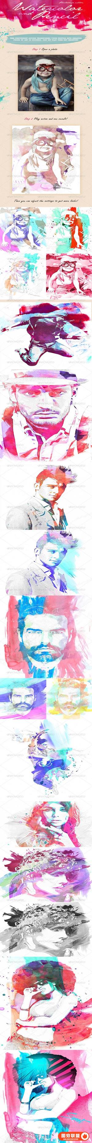 外文名称: GraphicRiver Watercolor Pencil Photoshop Action 7619365