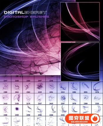 酷炫流动抽象几何线条PS笔刷 (Ron\'s Digital Energy)(1.1GB)