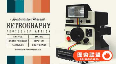 由Creativemarket机构出品的摄影级光彩特效PS动作,Creativemarket Retrography Photoshop Action 338702,大小:700 KB,格式:ATN,包含摄影级光彩特效PS动作文件,为设计师提供精彩绝伦的灵感素材,使用软件:建议Photoshop CS3或以上版本。