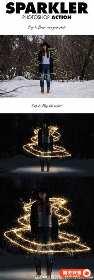 惊人的烟火烟花效果PS动作 Sparkler Photoshop Action(附教程)