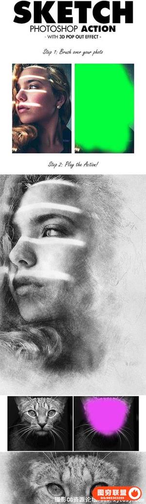图穷联盟预设 » 逼真流行3D素描效果PS动作 Sketch Photoshop Action 附教程