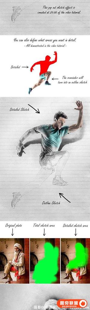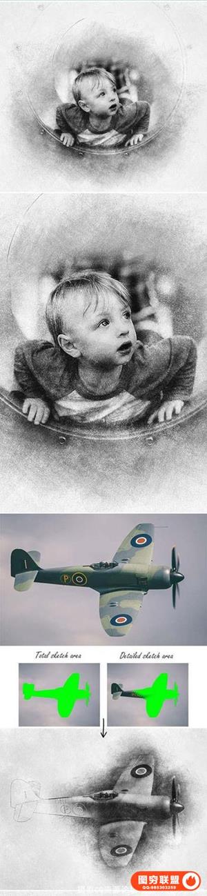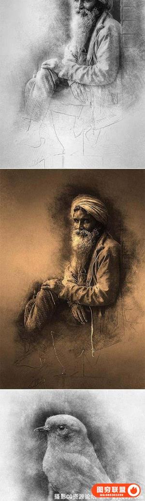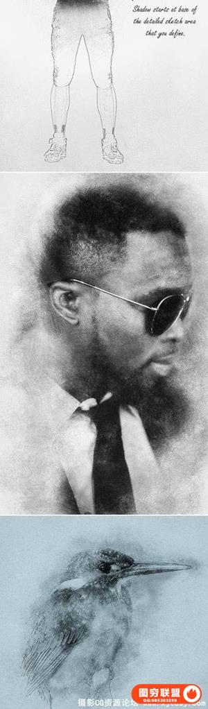 逼真流行3D素描效果PS动作 Sketch Photoshop Action 附教程
