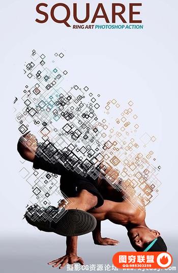 图穷联盟预设 » 几何方块抽离PS动作 Square Ring Art Photoshop Action(附教程)