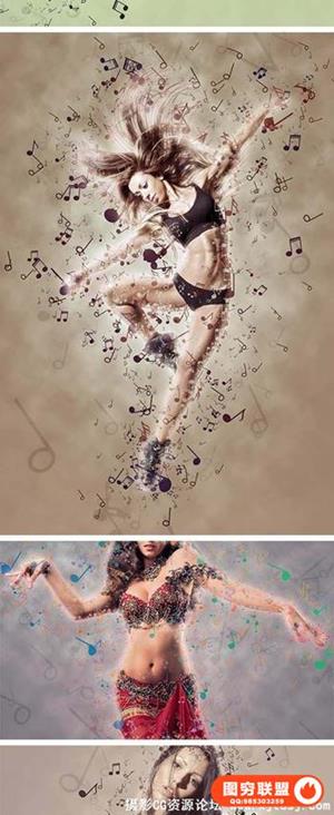 音符分散PS特效动作 Music Notes Action(含视频教程)