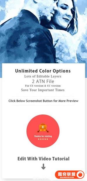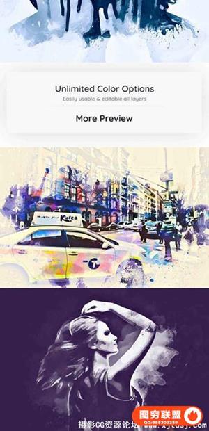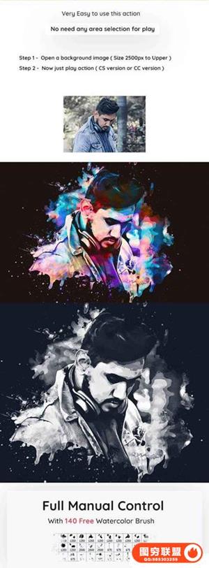 从你的照片得到逼真的水彩画效果几点击。你也可以创造一个优质的数字绘画的效果使用这个动作。动作进行了测试和工作的PS图象处理软件CS3,CS4,CS5,CS5.5 CS6,CC和CC +,所有版本。