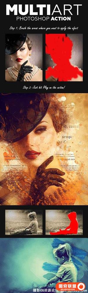 图穷联盟预设 » 水彩艺术PS图片处理动作 Multi Art Photoshop Action(附视频教程)