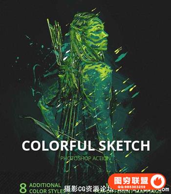 图穷联盟预设 » 五彩草绘PS特效动作 Colorful Sketch Photoshop Action