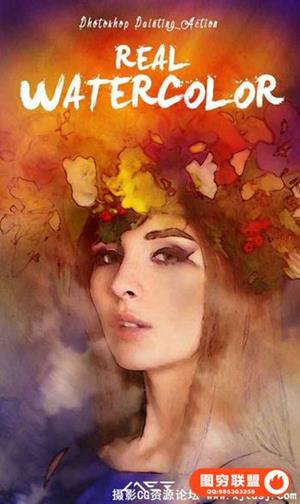 图穷联盟预设 » 真正水彩画PS动作 Real Watercolor Painting Photoshop Action -