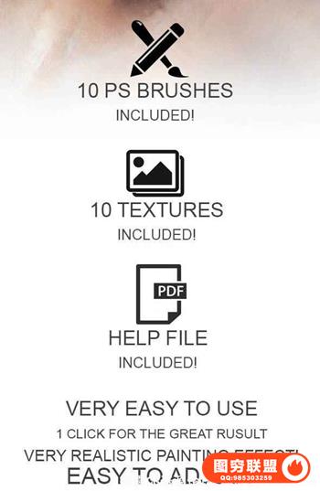 10个压力敏感的传统媒体模拟PS图象处理软件笔刷来实现看起来更逼真!(在运行操作之前,您需要他们刷出必须操作的区域)