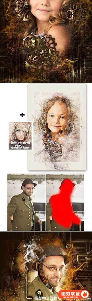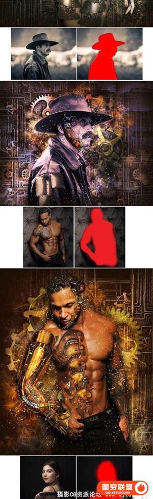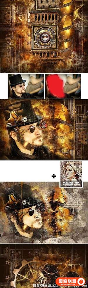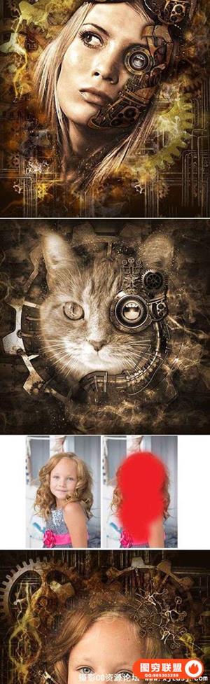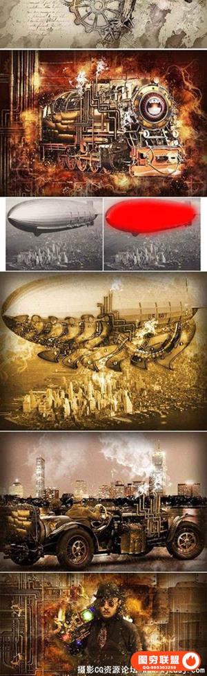 图穷联盟预设 » 蒸汽朋克艺术PS动作工具包 Steampunk Art Kit PS Action(附教程)