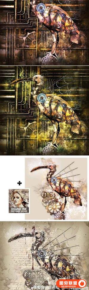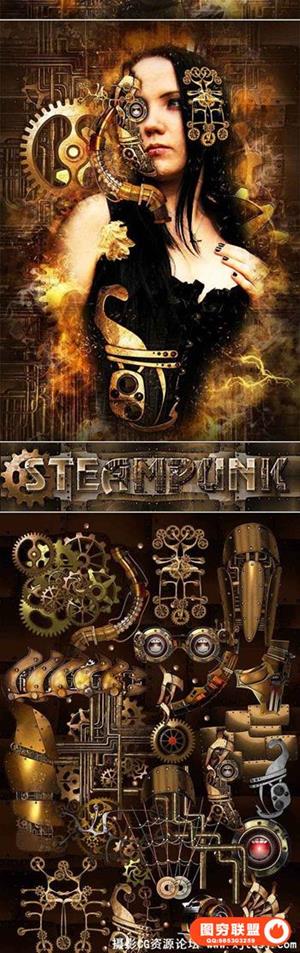 蒸汽朋克艺术PS动作工具包 Steampunk Art Kit PS Action(附教程)