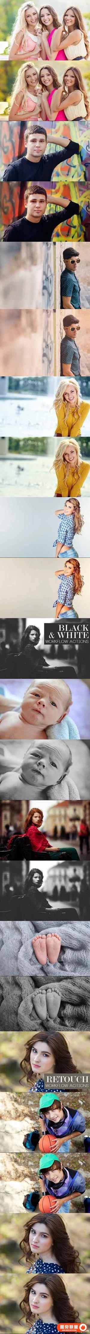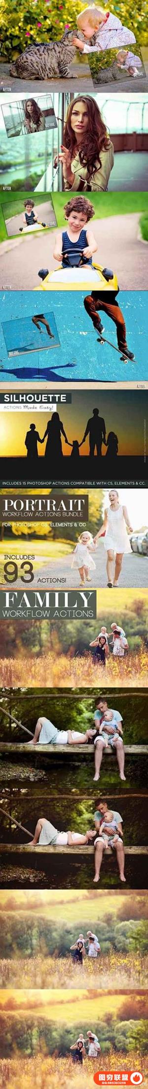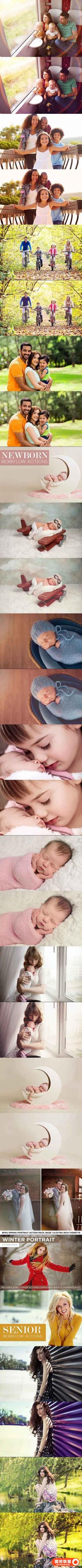 PORTRAIT工作流程动作捆绑 - 此套装包括针对家庭,新生儿和老年人的动作,以及黑白和修饰动作。包括:93项行动。