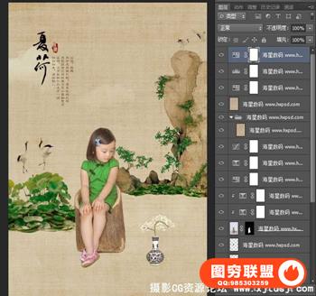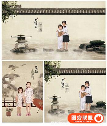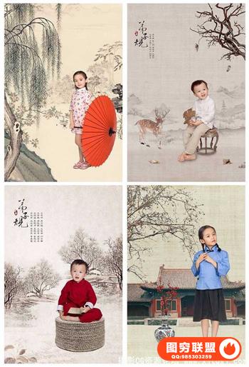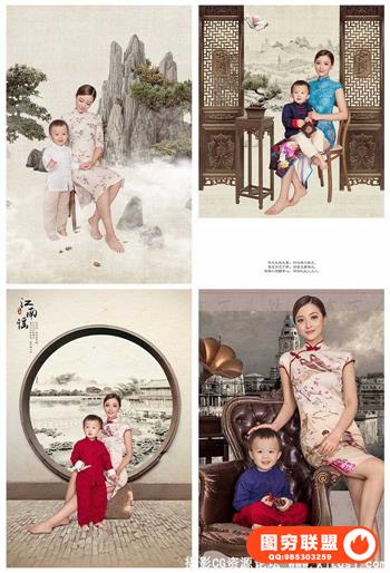 图穷联盟预设 » 民国风中国风工笔画全家福孕妇主题摄影素材
