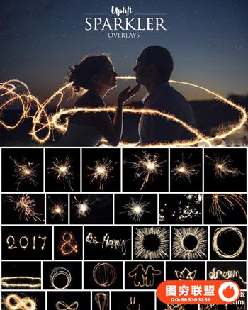 Add a little SPARKLE to your photos with 160 awesome sparkler overlays! Included are everything from individual sparklers, hearts, words and graphics – as well as a complete uppercase AND lowercase sparkler alphabet and set of numbers! Spell out anything you\'d like as easily as dragging and dropping them onto your image, and changing the layer blend mode to lighten or screen – or use the Sparkler Applicator Photoshop Action that is included to apply any overlay in one easy click! All files are huge and 300dpi – suitable for application on even the largest of professional digital photographs. See it in action in the video tutorial!