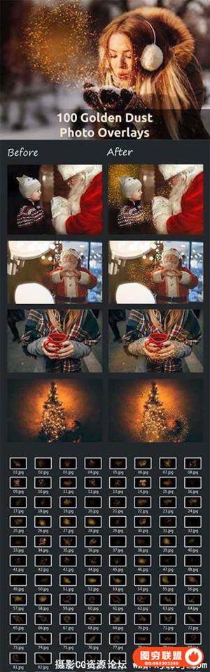图穷联盟预设 » 100张金色粉尘粒子魔幻闪光悬浮颗粒PS后期叠加合成素材