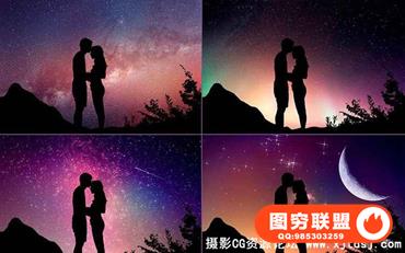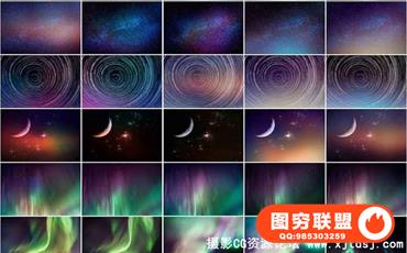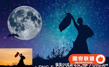 高清浩瀚星空夜空剪影叠加合成素材(附PS动作)