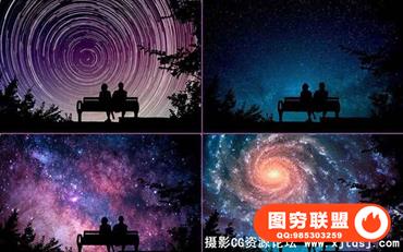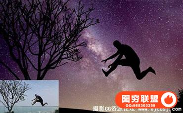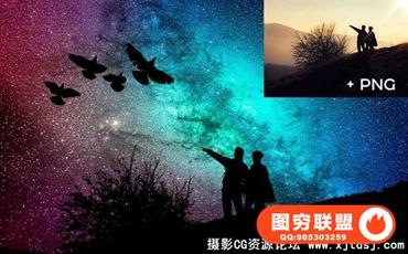 图穷联盟预设 » 高清浩瀚星空夜空剪影叠加合成素材(附PS动作)