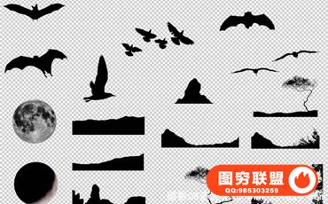 #11088;17个PNG演员(蝙蝠,鸟,月亮,山脉,树木)