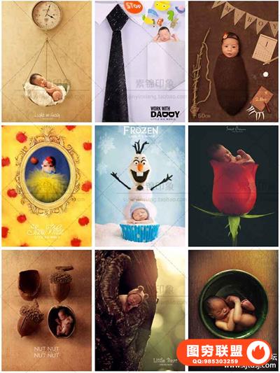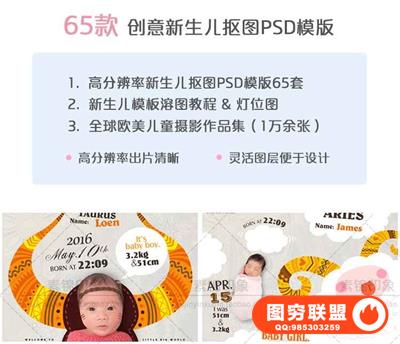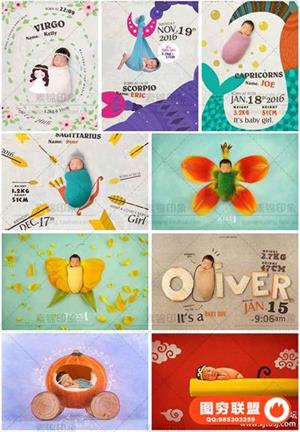 图穷联盟预设 » 新生儿全套主题抠图模版 创意3D溶图PSD 后期设计素材