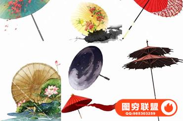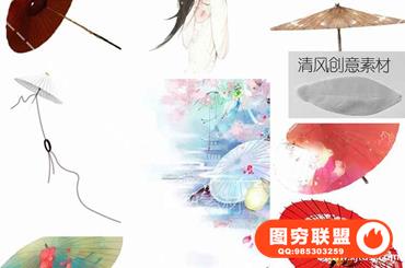 图穷联盟预设 » 50款免抠水彩古风油纸伞中国风唯美手绘伞古典复古PS