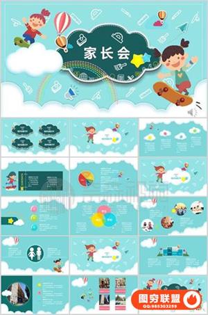 图穷联盟预设 » 可爱卡通儿童精美动态PPT模板 幼儿园小学老师家长班会教学课件