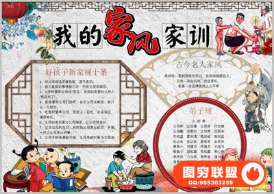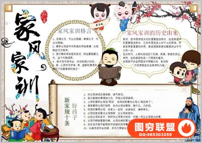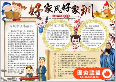 图穷联盟预设 » 家风家训手抄小报模板小学生一二年级word成品可编辑电子模版a3a4