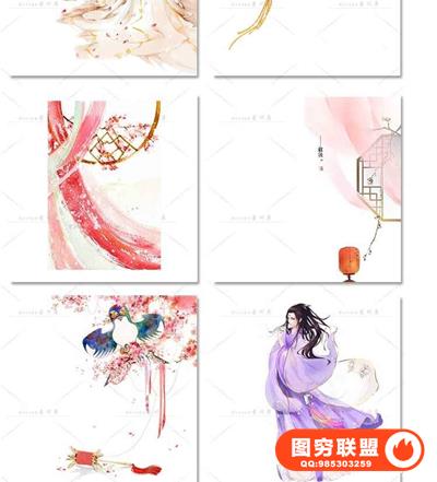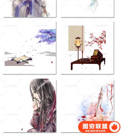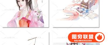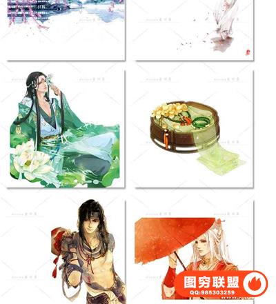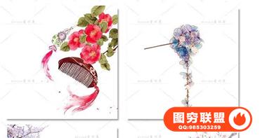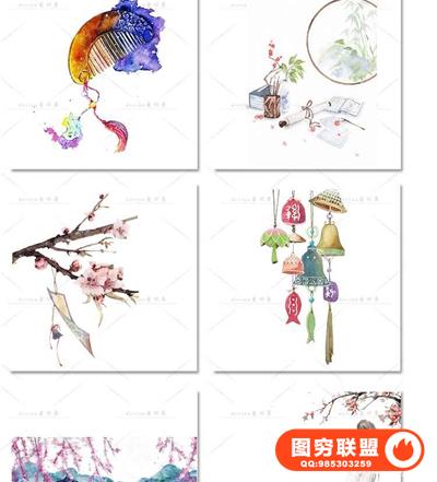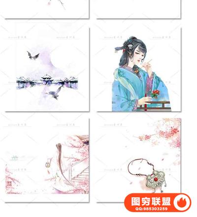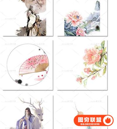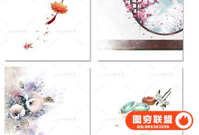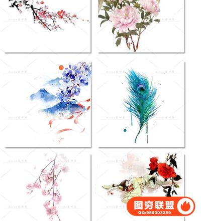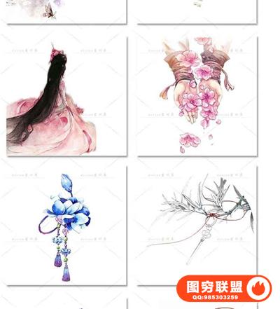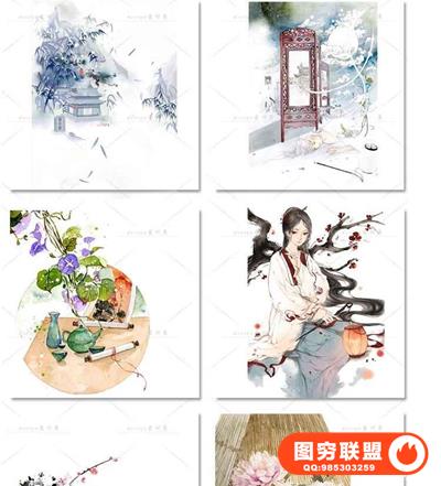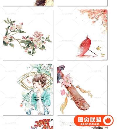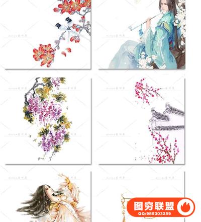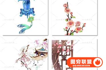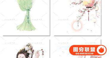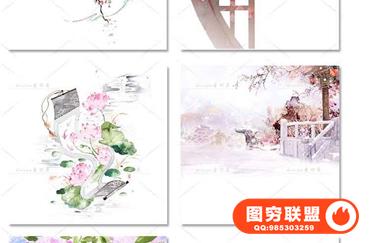 图穷联盟预设 » 唯美水彩手绘古风插画花卉建筑人物装饰PNG免抠背景透明图片素材