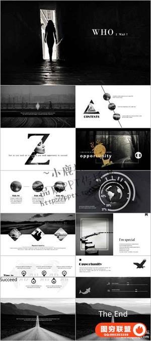 图穷联盟预设 » 黑白艺术设计极简创意杂志风素雅简约图文混排ppt模板素材动态