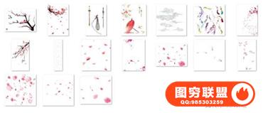 图穷联盟预设 » 中国复古风仙侠桃花桃树蝴蝶伞云灯笼PNG免抠图片PSD后期设计素材