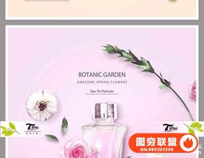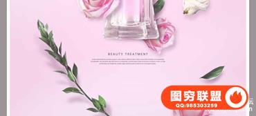 图穷联盟预设 » 新创意女性美妆唯美鲜花浪漫花瓣花海化妆品香水植物海报PSD模板