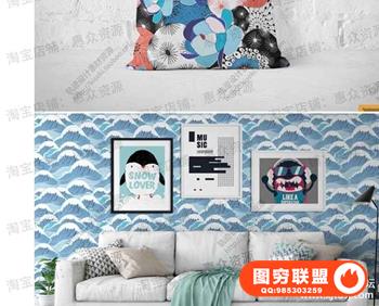 抽象艺术浮世绘和风浪花无缝纹理背景手机壳T恤图案ai矢量图素材