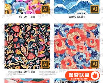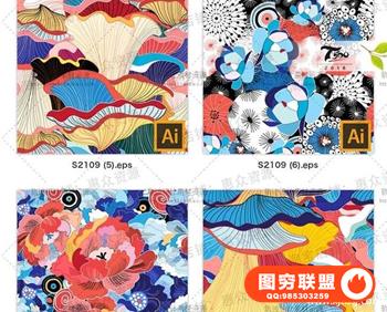 图穷联盟预设 » 抽象艺术浮世绘和风浪花无缝纹理背景手机壳T恤图案ai矢量图素材