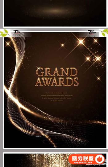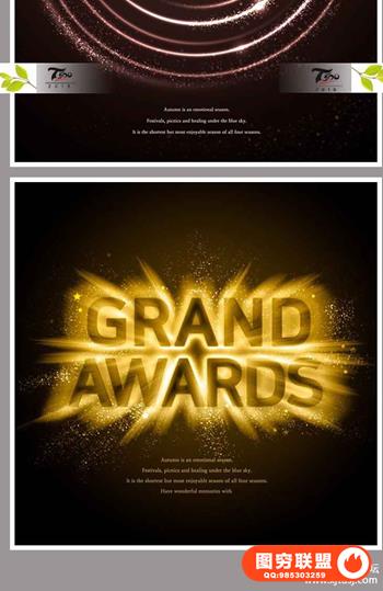 图穷联盟预设 » 创意绚丽黑金现代灯光效果舞台曲线时尚金色美光英文海报PSD素材