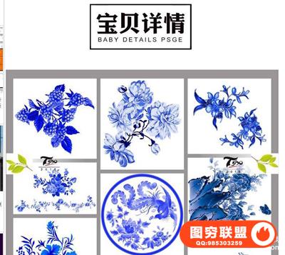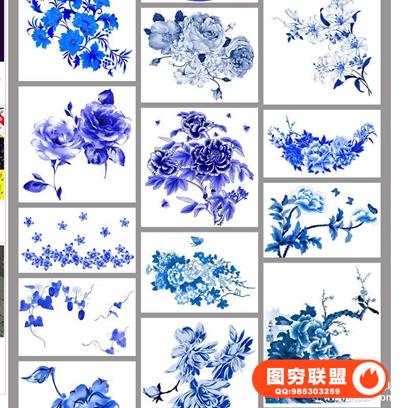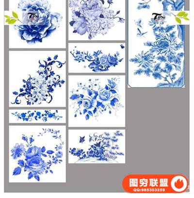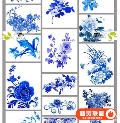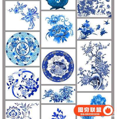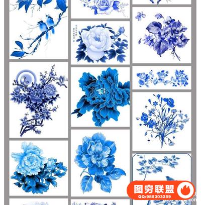 图穷联盟预设 » 古典中国风青花瓷花纹花卉植物元素婚纱影楼后期PNG免抠素材模板