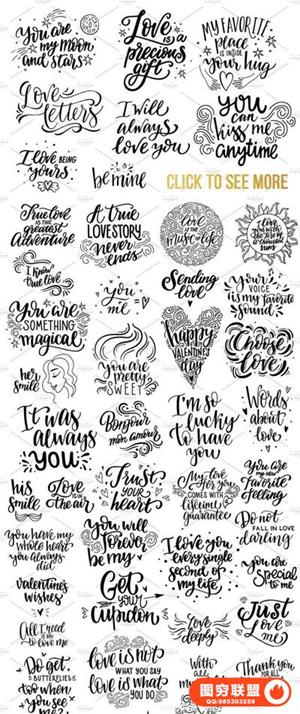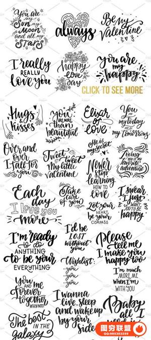 图穷联盟预设 » 5K高清120个情人节婚礼手写浪漫语录和文字字体合成素材合集 -