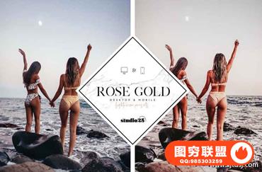 图穷联盟预设 » Insta流行玫瑰金风格人像Lightroom预设+手机版预设Rose gold preset