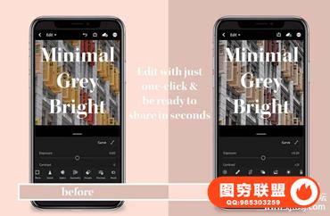 图穷联盟预设 » Insta流行色极简高级灰旅拍人像风景Lightroom预设+手机版LR预设