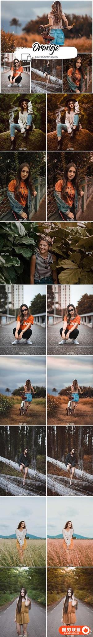 INS网红柔和橙色风格LR预设+手机lr预设 Orange Lightroom Presets