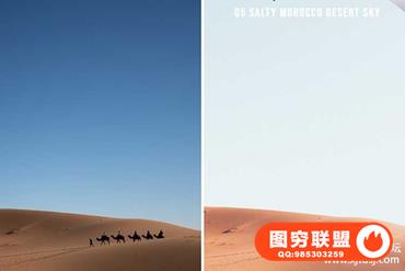 05咸摩洛哥经典-沙漠天空|受到摩洛哥沙丘和沙漠的启发。给闪闪发光的沙子带来淡淡的橙金色,使其几乎像一幅画。在05沙漠预设中,天空中仍带有淡淡的蓝色,而该颜色则呈现出更多的颜色,仅集中在沙丘上。
