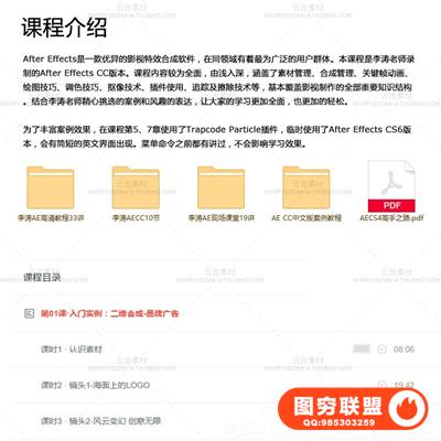图穷联盟预设 » 李涛AE CC高高手 实例教程 还有素材 近40个课时